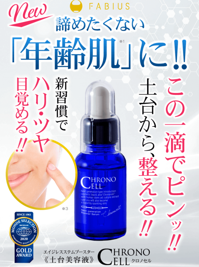 | クロノセルとは | ヒト由来培養エキスを贅沢にも3種も配合!話題の美肌菌にも馴染みやすい年齢対策美容液。 |