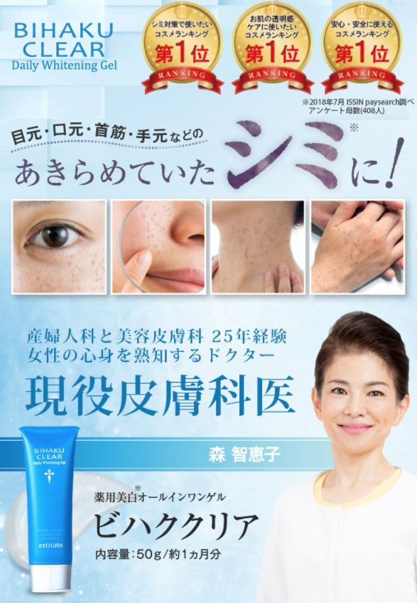| ビハククリアとは | 諦めていた目元口元首筋などに自宅で出来るシミ対策が初回1,800円(税抜) |