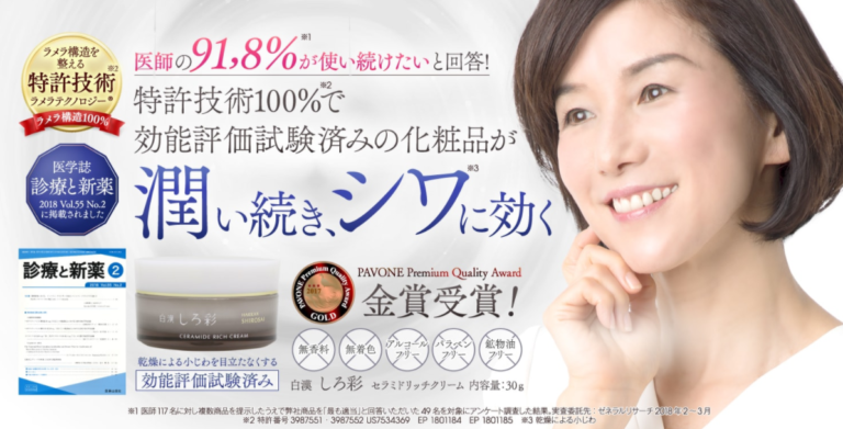 | しろ彩 セラミドリッチクリームとは | 特許技術100%の無添加化粧品で高級感あふれる潤い美人に。初回限定50%OFF!送料無料 |